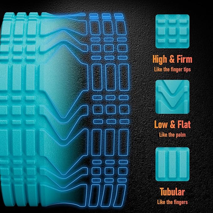 • Enhanced Blood Flow & Recovery: The 3D grid surface promotes circulation and oxygen flow while rolling.Its multi-density ridges offer varying pressure levels, helping you achieve deeper stretches and faster muscle recovery. Indulge in unparalleled comfort with our back wheel for pain relief.