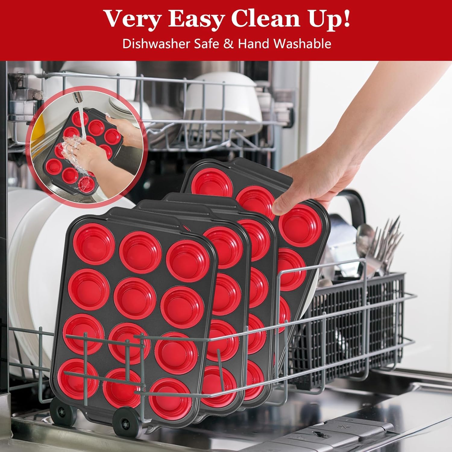- ✅ Hassle-Free Cleaning – Silicone muffin pan with nonstick coating prevents residue—just a quick hand wash or toss in the dishwasher! the silicone egg molds do not stick or leave a residue, a quick soapy brush does the trick and your'e ready to bake another round