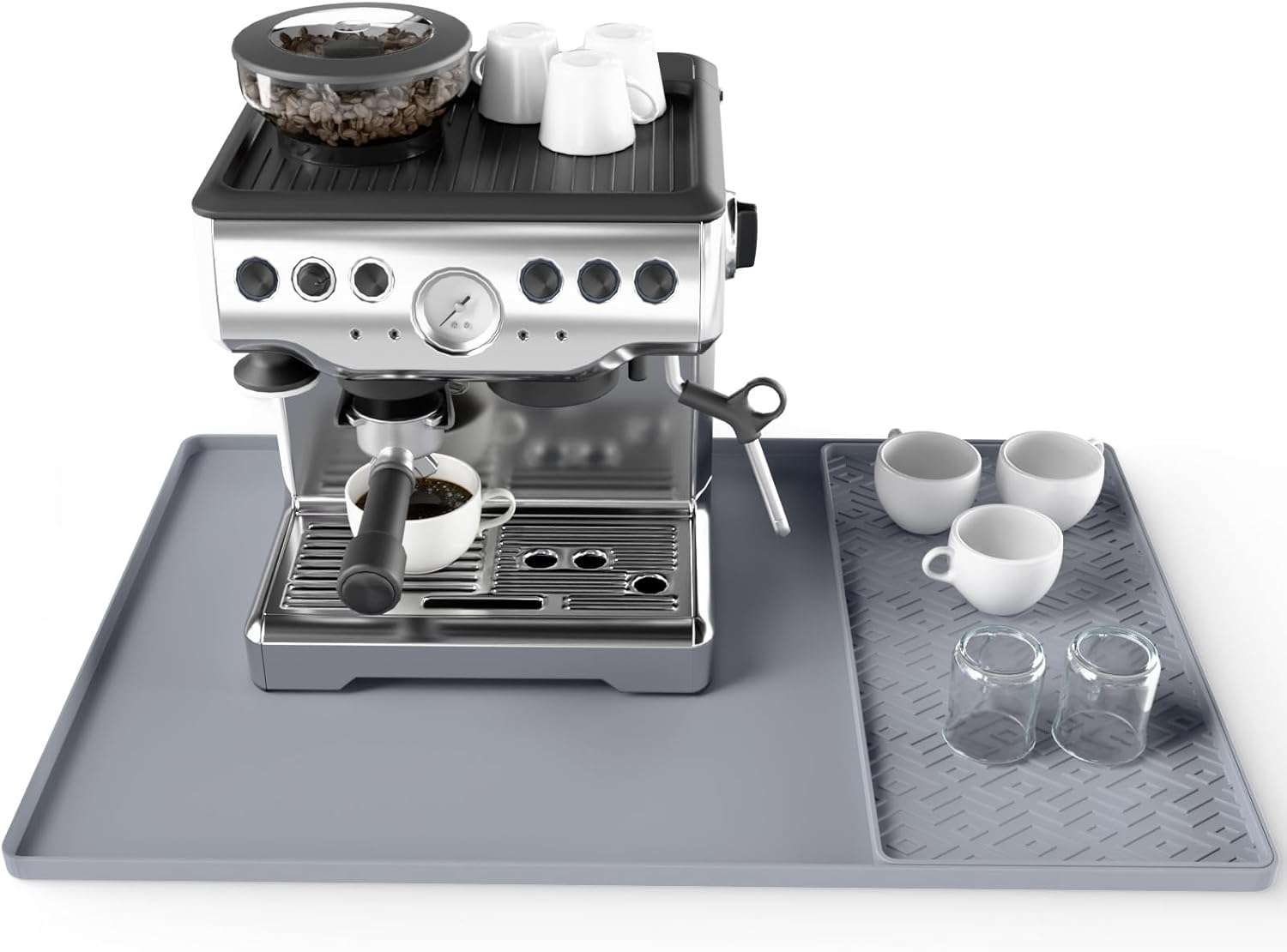 Silicone Coffee mat 24''x16'' – Non-Slip Bar Mat with Detachable Drying Layer for Espresso Machines, Countertops & Dish Racks