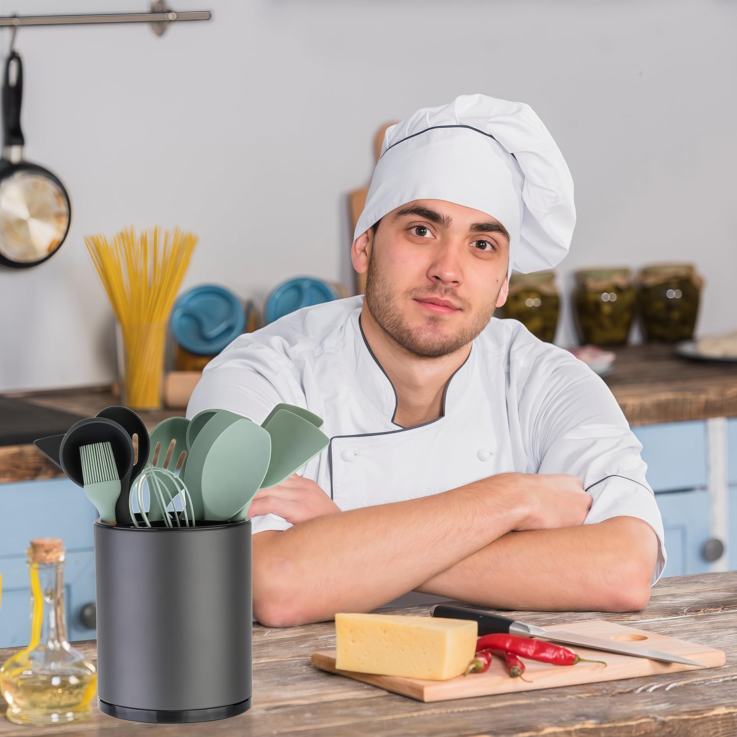 - A Smart Solution for Every Kitchen: Whether you're a seasoned chef or a home cook, our Utensil Holder is the perfect addition to your kitchen. Its combination of ultra-capacity, smooth rotation, fingerprint resistance, and easy disassembly for cleaning makes it a smart, practical choice for anyone seeking a more efficient and organized cooking space.
