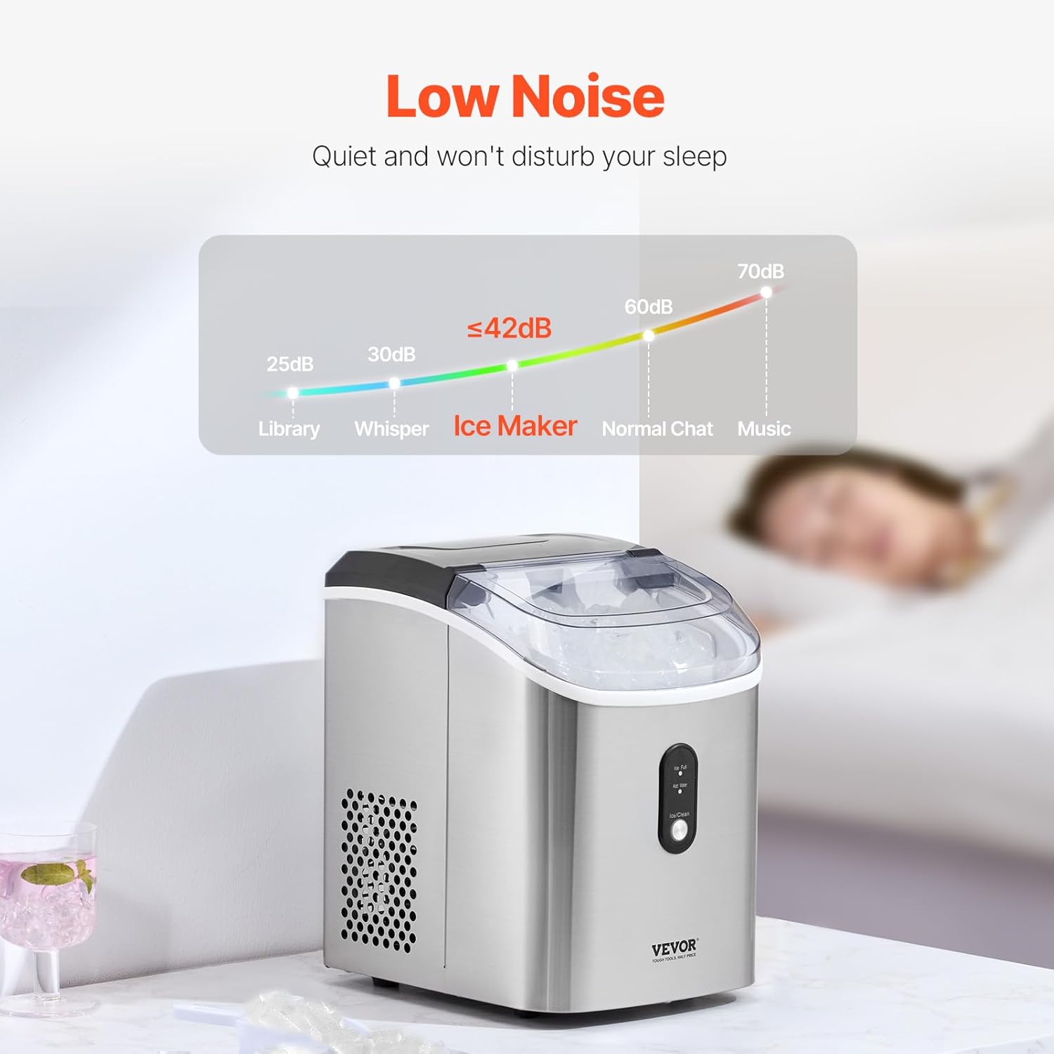 VEVOR Nugget Ice Maker, 33lbs/24H Pebble Ice Maker with Self Cleaning, Chewable Ice Maker with Ice Scoop & Basket, Stainless Steel Ice Machine with Transparent Lid for Home Kitchen Office Bar Party