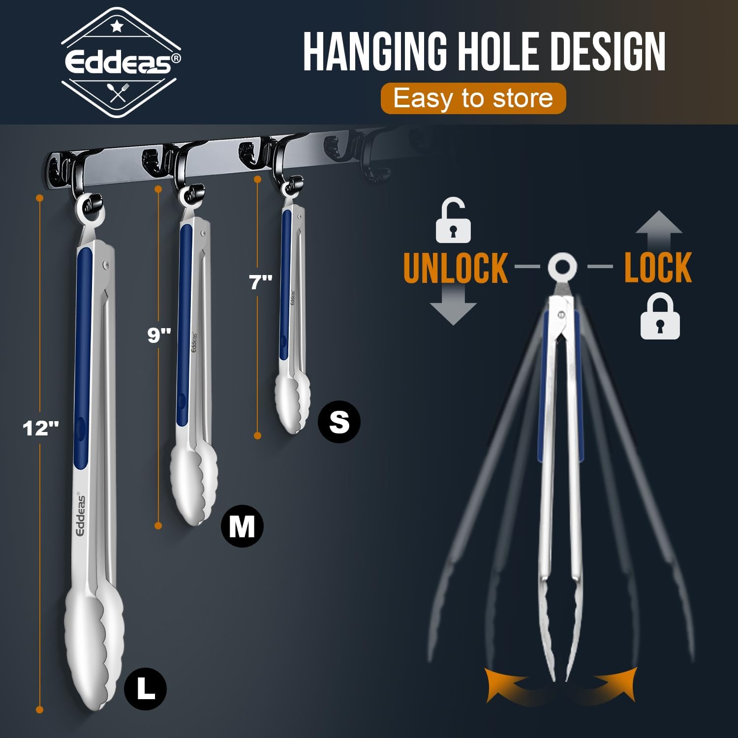 - MULTIPLE APPLICATION - Perfect for everyday kitchen tasks or outdoor use, whether you use them as cooking tongs , salad tongs, grill tongs, need reliable Heavy Duty Metal KitchenTongs for Cooking to grab food from boiling water, or as a grill Turner or salad server, EDDEAS tongs will meet your needs for safety and stability Size: 7in + 9in + 12in Set of 3 blue