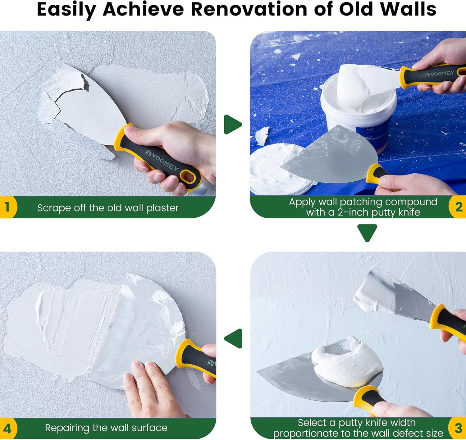 Voomey Putty Knife Set 3 Pack, Stainless Steel Paint Scraper and Spackle Knife Drywall Tools for Wallpaper Removal, Drywall Repair, and Painting Projects