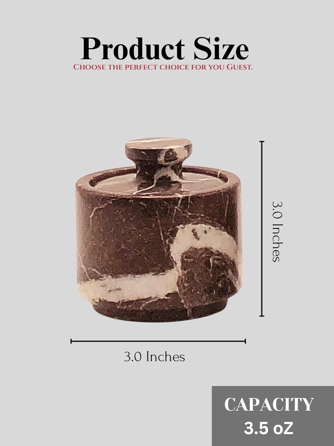 Marble Salt Cellar with Lid - 2 Pack Set, 3.5oz Kitchen Storage Containers, Premium White Red Marble Pattern