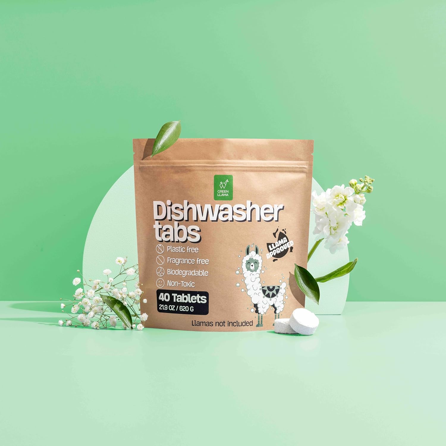 Dish Washing Machine Tablets, Pack of 40 - Fragrance-Free, PVA-Free, Non-Toxic Dishwasher Tablets in Compostable Packaging – Women-Owned Company, Leaping Bunny Certified