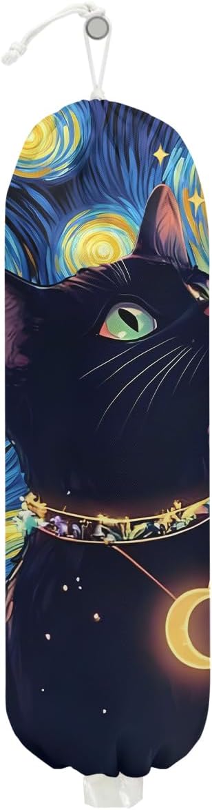Sky Cat Plastic Bag Holder, Wall Mount Grocery Bag Holder, Plastic Storage bag, Pull Rope Free Adjustment, Plastic Bag Holders for Grocery Bags, Plastic Bag Dispenser for Home Kitchen