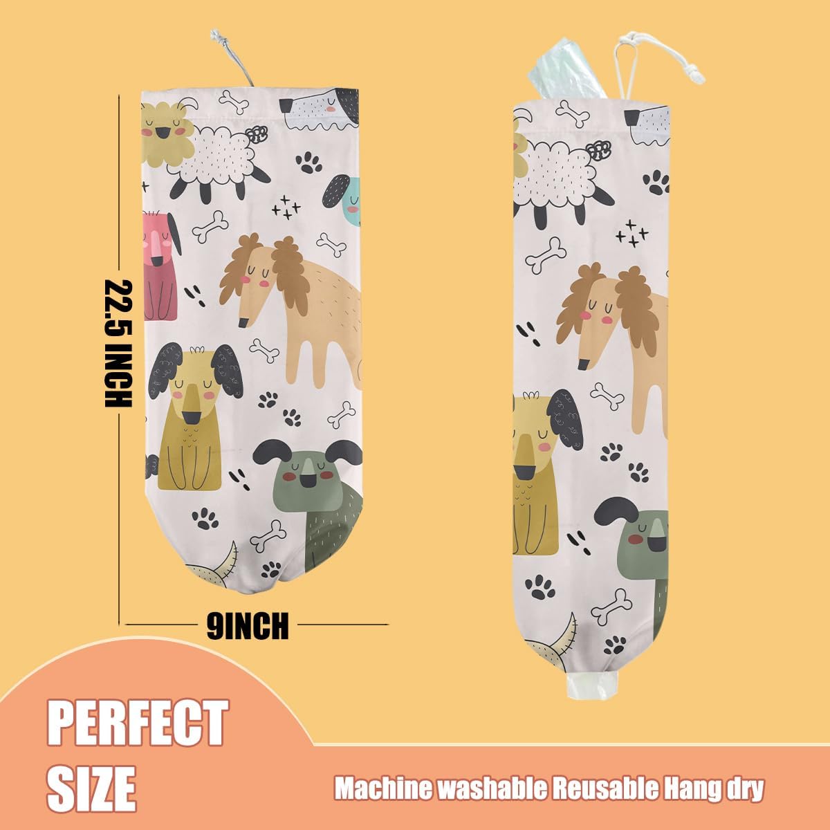 Dog Plastic Bag Holder, Wall Mount Grocery Bag Holder, Plastic Storage bag, Pull Rope Free Adjustment, Plastic Bag Holders for Grocery Bags, Plastic Bag Dispenser for Pantry Kitchen, Dog Lover Gifts