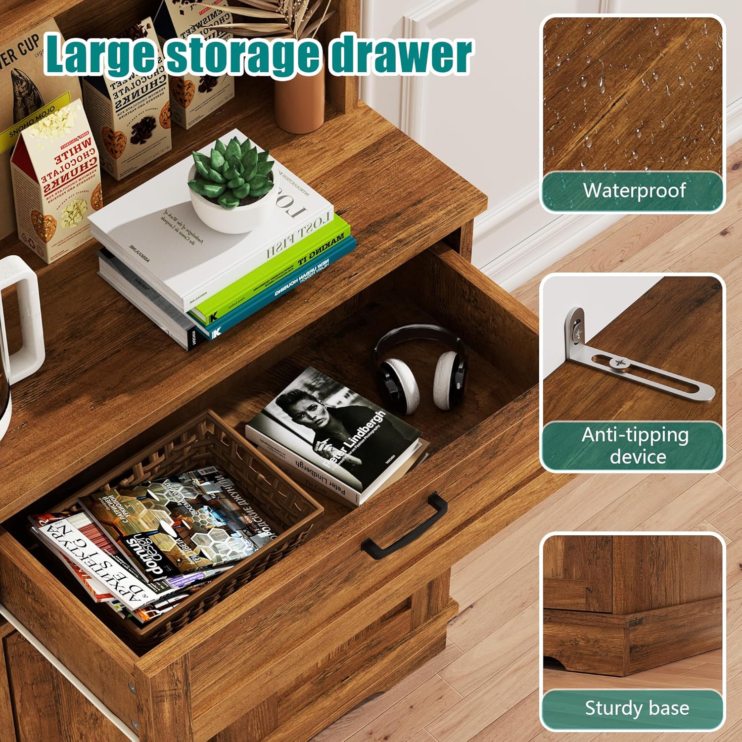 - Multi Scene: Except for being used as a food pantry cabinet in the kitchen, this hutch cabinet also works well as coffee bar, buffet cabinet in the dining room or as bar cabinet in the living room. It's the perfect pick that any family will love to fill their home.