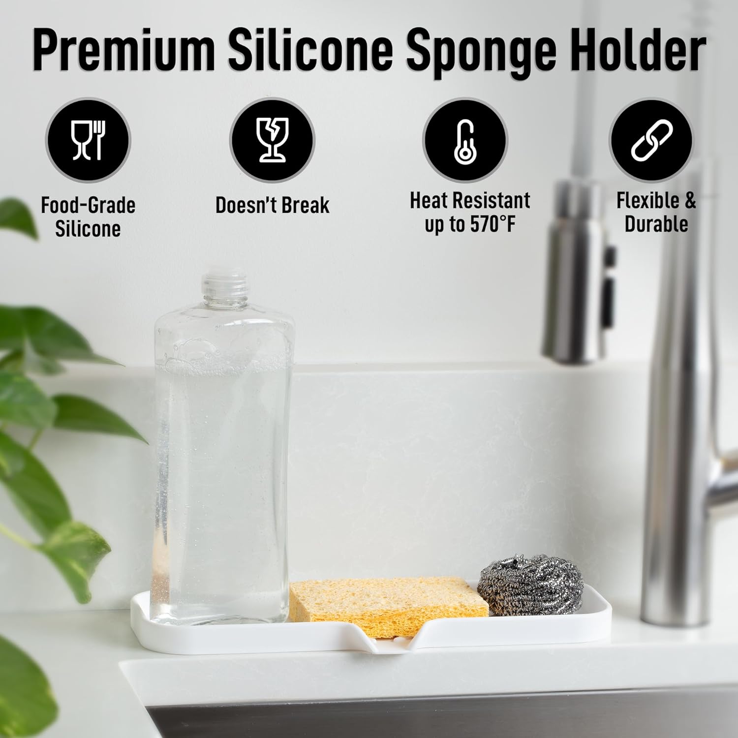 - DURABLE AND HEAT RESISTANT: Built with non-scratch silicone, this dish soap holder is thick, durable, and made to last. Our kitchen sponge holder can withstand heat up to 570°F, making it ideal for hot tools like cooking spoons, curling irons, or straighteners.