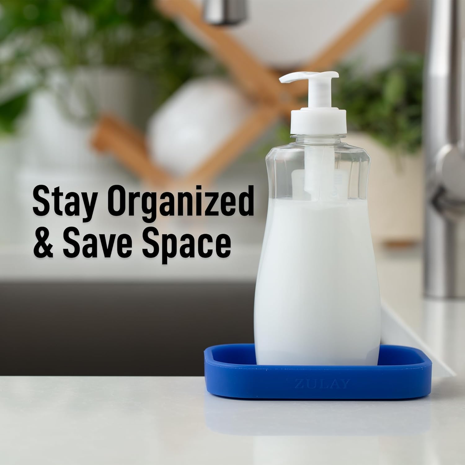 Zulay Kitchen Small Silicone Sponge Holder (4.9x3.3”) – Space-Saving Sink Organizer Tray for Sponge, Soap, Brush & More – Compact Non-Slip Dish for Kitchen & Bathroom (Turkish Sea)