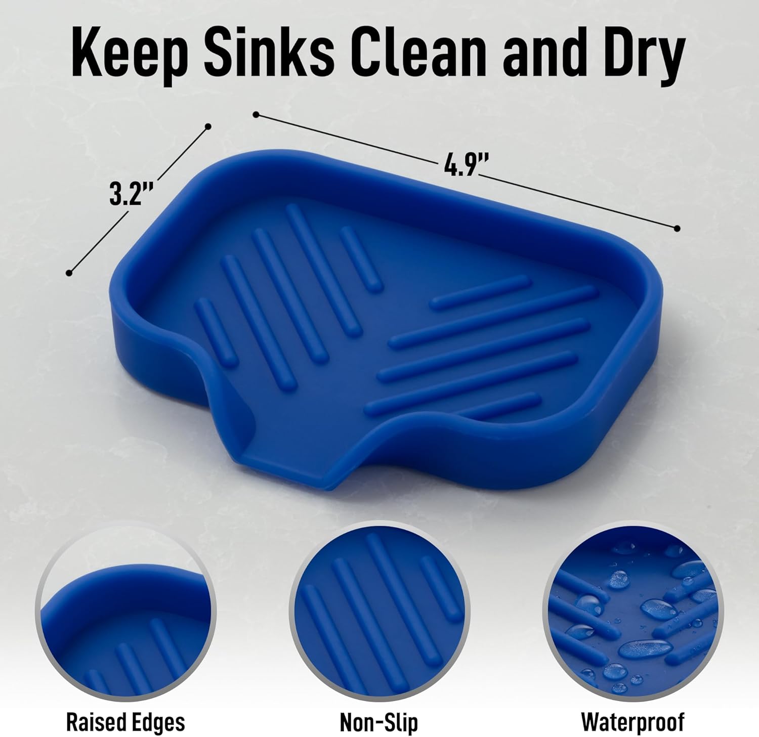 - MESS-FREE COUNTERTOPS: Keep your sink area tidy and free from soap residue with our small silicone sponge holder. Measuring 4.9 x 3.3 inches, this compact tray is ideal for holding a sponge, scrubber, soap bar, or small brush. Its space-saving design is perfect for use in kitchens, bathrooms, laundry rooms, or vanities—great for organizing small essentials like jewelry, makeup, or accessories.