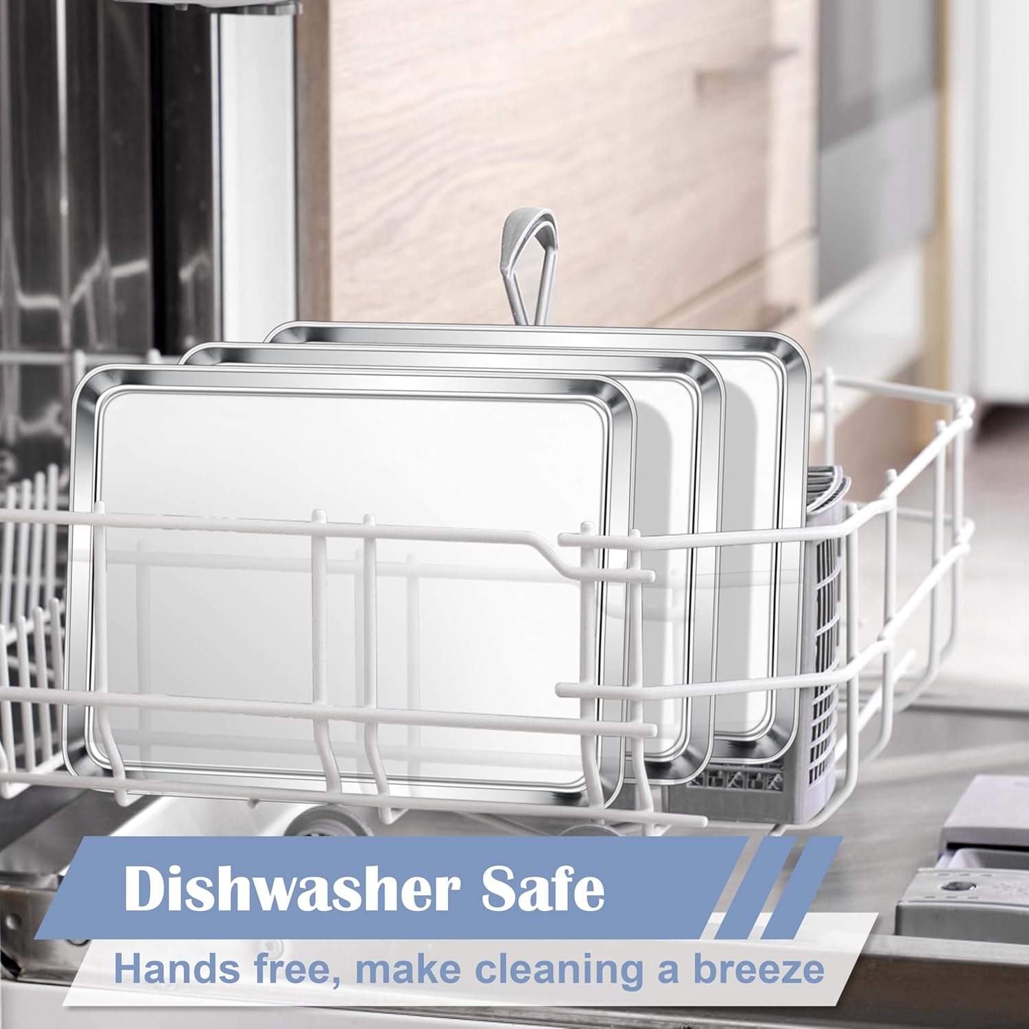 E-far Stainless Steel Baking Sheets Set of 3, 12.4” x9.7” Baking Cookie Sheets Pans for Oven, Non-toxic Metal Trays for Cake Cookies, Healthy & Rust Free, Mirror Finish & Dishwasher Safe