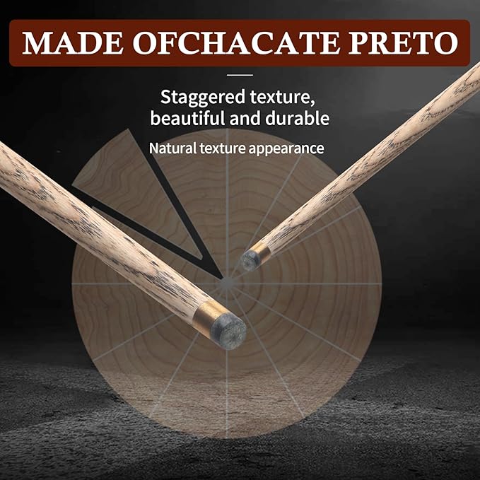 • Exquisite Shaft Craftsmanship: The three pool sticks are made of hard black walnut woods, wear-resistant and durable. Splicing craftsmanship makes the cue structure stable and not easy to crack and deform