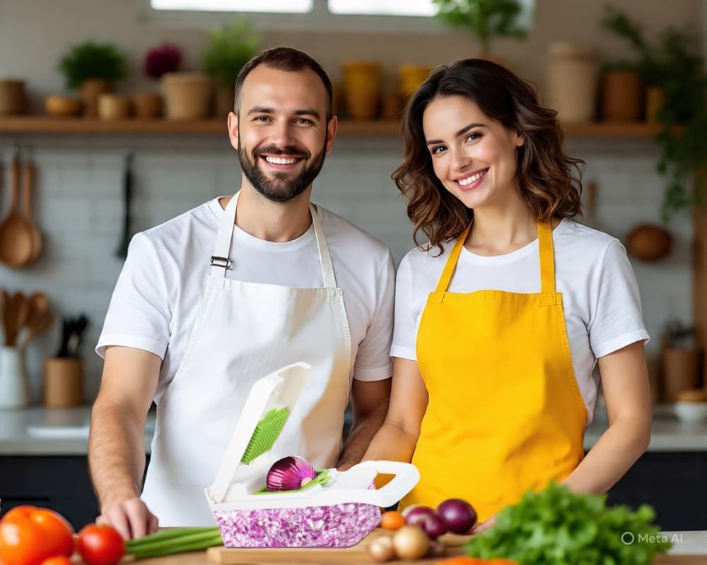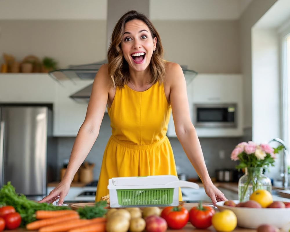- IMPROVES YOUR HEALTH AND SAVES TIME - With our functional kitchen gadget and the versatile vegetable chopper tool makes this process less time-consuming, so you will not have trouble cutting vegetables or fruits. you can free your hand on chopping, slicing and cutting, help you cook like a pro, making it easier to add vegetables to your meals. With faster prep & faster cleanup you can live your best, healthiest life every day. Allows you to spend less time preparing food and enjoying more time for your family.