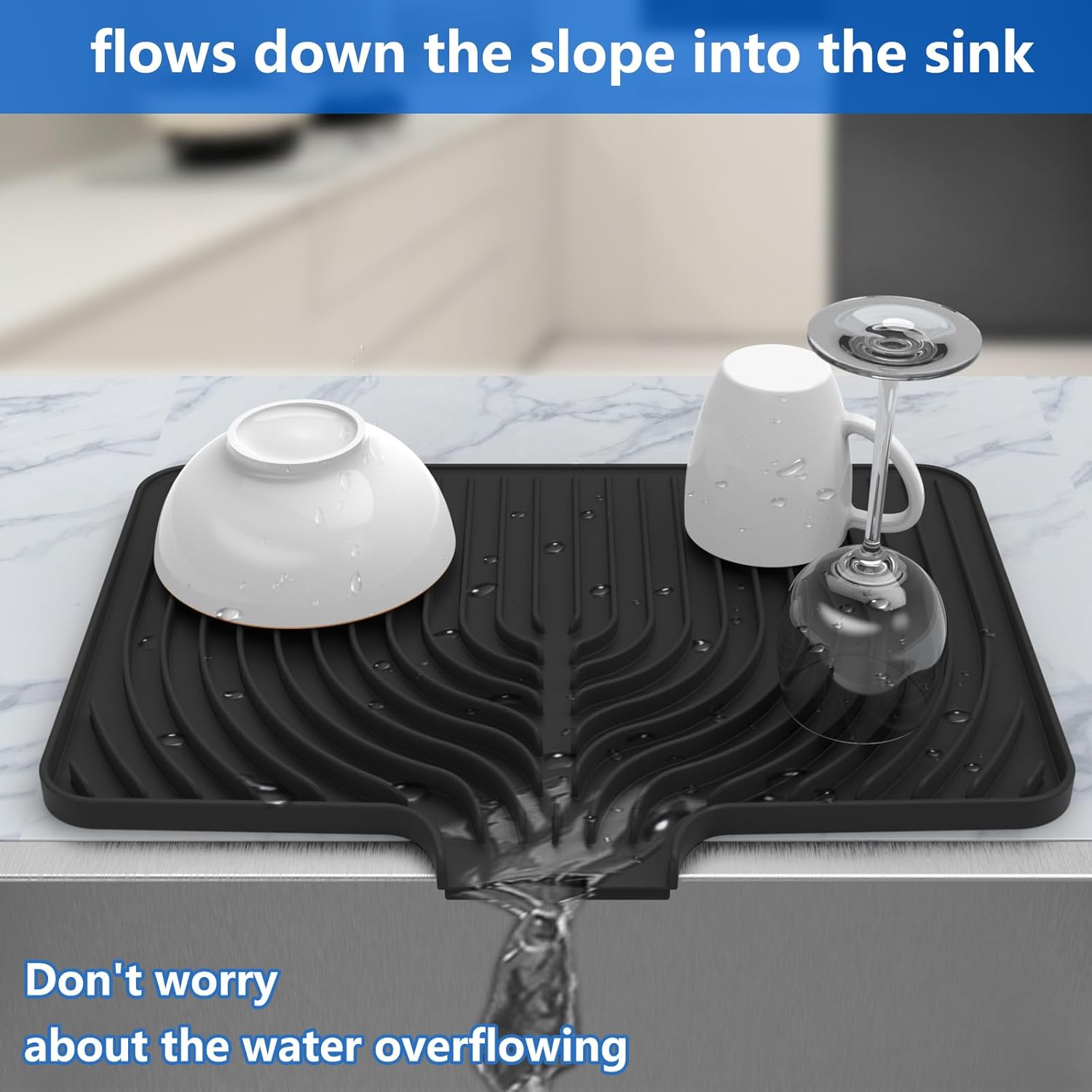 Dish Drying Matt for Kitchen Counter,18"×12"Silicone Dry Rack Mat with Built in Drain, Kitchen Dry Mats for Dishes Drying Pad for Counter(black)