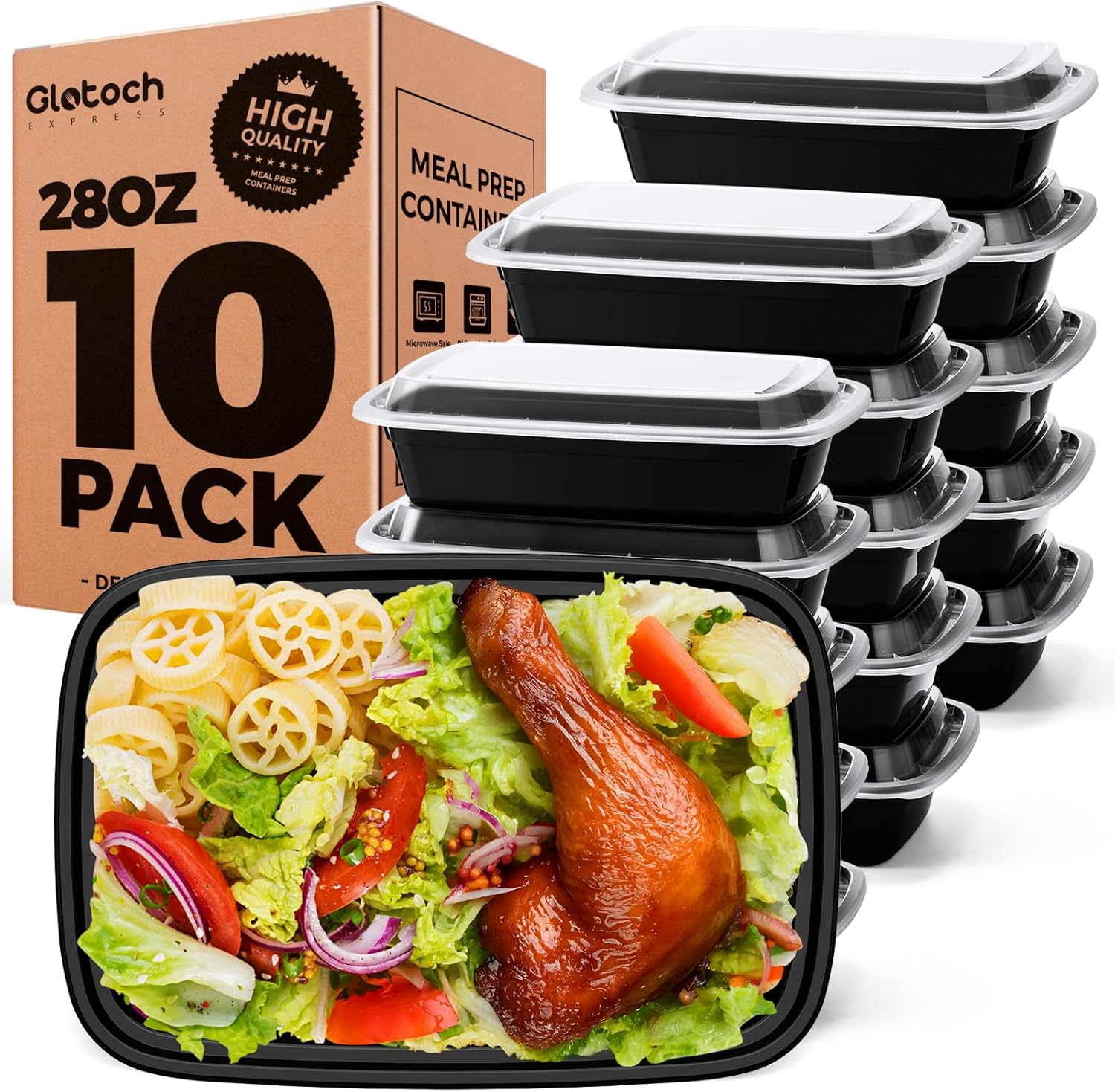 Glotoch 28oz Meal Prep Containers, 10 Pack (20-Piece) Reusable Food Storage Containers with Lids Microwave, Freezer, Dishwasher Safe - Leakproof & BPA Free Durable Plastic Lunch Box To Go Take Out