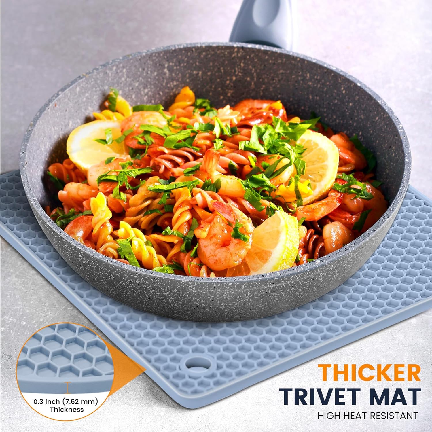 - 2、Non-slip and high heat resistant: These trivets for hot dishes are heat-resistant from -104℉ to 446℉, Protect your countertop or table from hot pots, hot pans coming out from the microwave or stove. Silicone trivet is non-slip to make nothing slide off.
