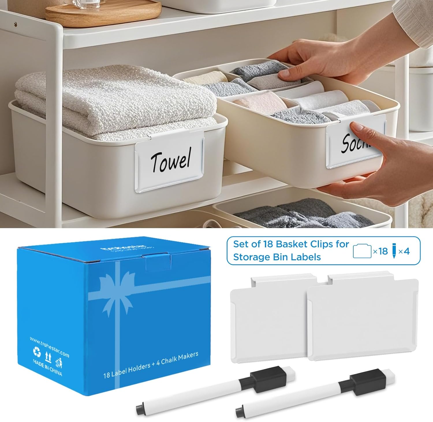 - HOME RUNNER for HOME ORGANIZATION: Our 8 PACK storage bins labels can be used in your Kitchen, Pantry, Laundry Room, closets and cabinets, etc. Clips onto MOST of storage bins and baskets, and boxes. When your home and life are more organized, it creates more time for the people and activities you love the most!