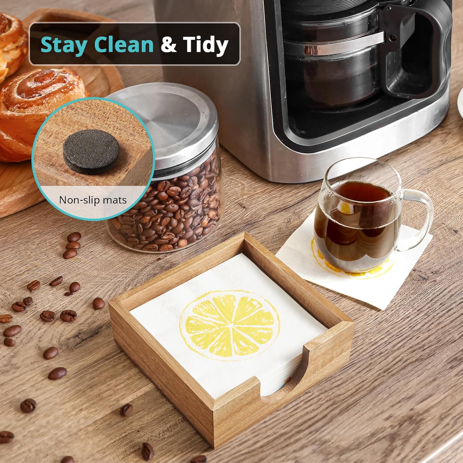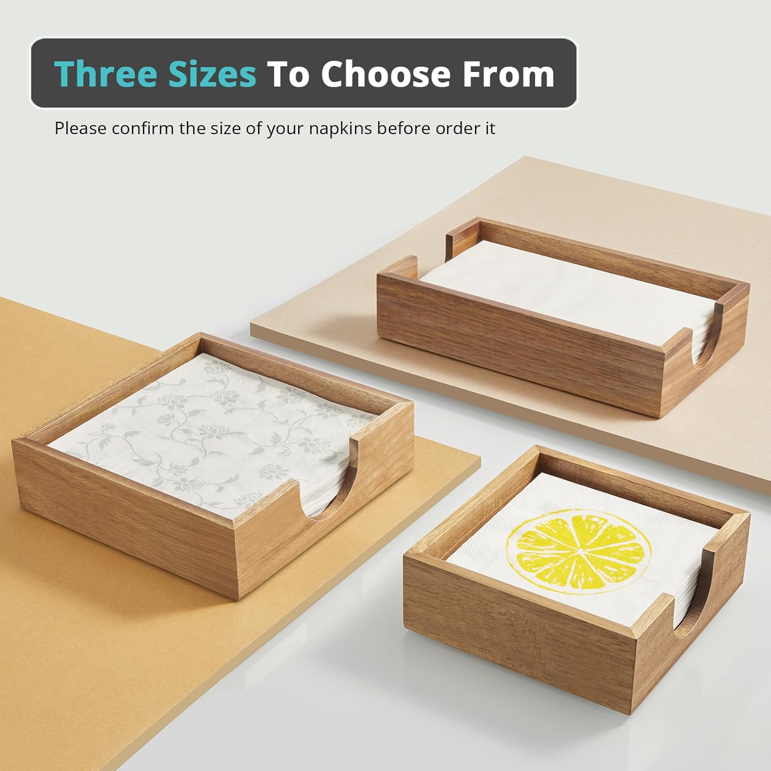 Acacia Wood Cocktail Napkin Holder, Beverage Napkin Holder for 5 x 5 inch Napkin, Square Paper Napkin Caddy for Bar, Party, Table, Dinner, Kitchen, Bathroom