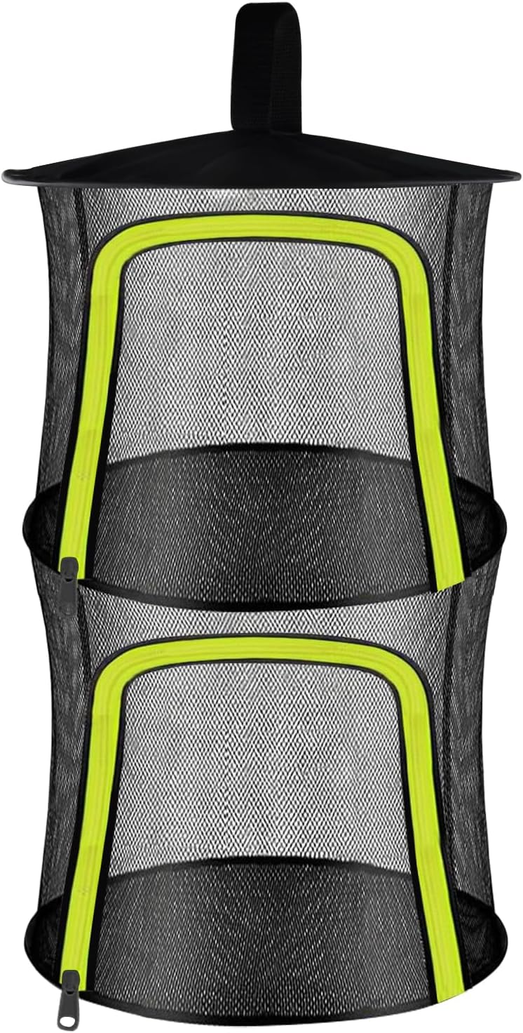 2 Layer Herb Drying Rack, Small Herb Drying Rack Hanging Mesh, Foldable Fish Drying Net with U-Shaped Zipper, Hooks, for Drying Herbs Plants, Flowers, Fruits, Food, Camping(2 Layers-11.81'')