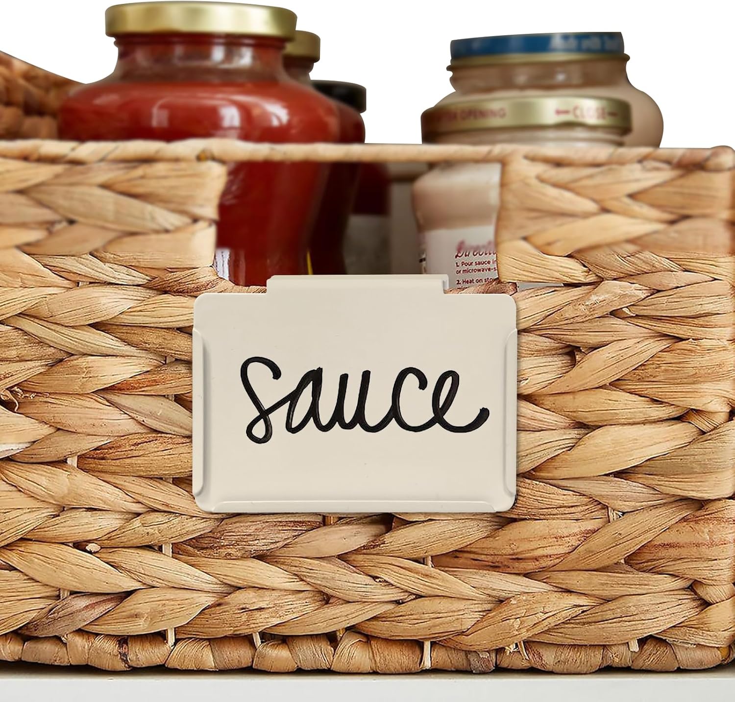 - SUPER VALUE & PRACTICAL BONUS: Item includes 8 PACK metal basket label holders in cream and 2 PACK white chalk makers as a practical BONUS. A small investment for a more functional organization and storage system. Everything you need to organize your home pantry is here. Dimensions: 3-1/2"L x 2-5/8" H.