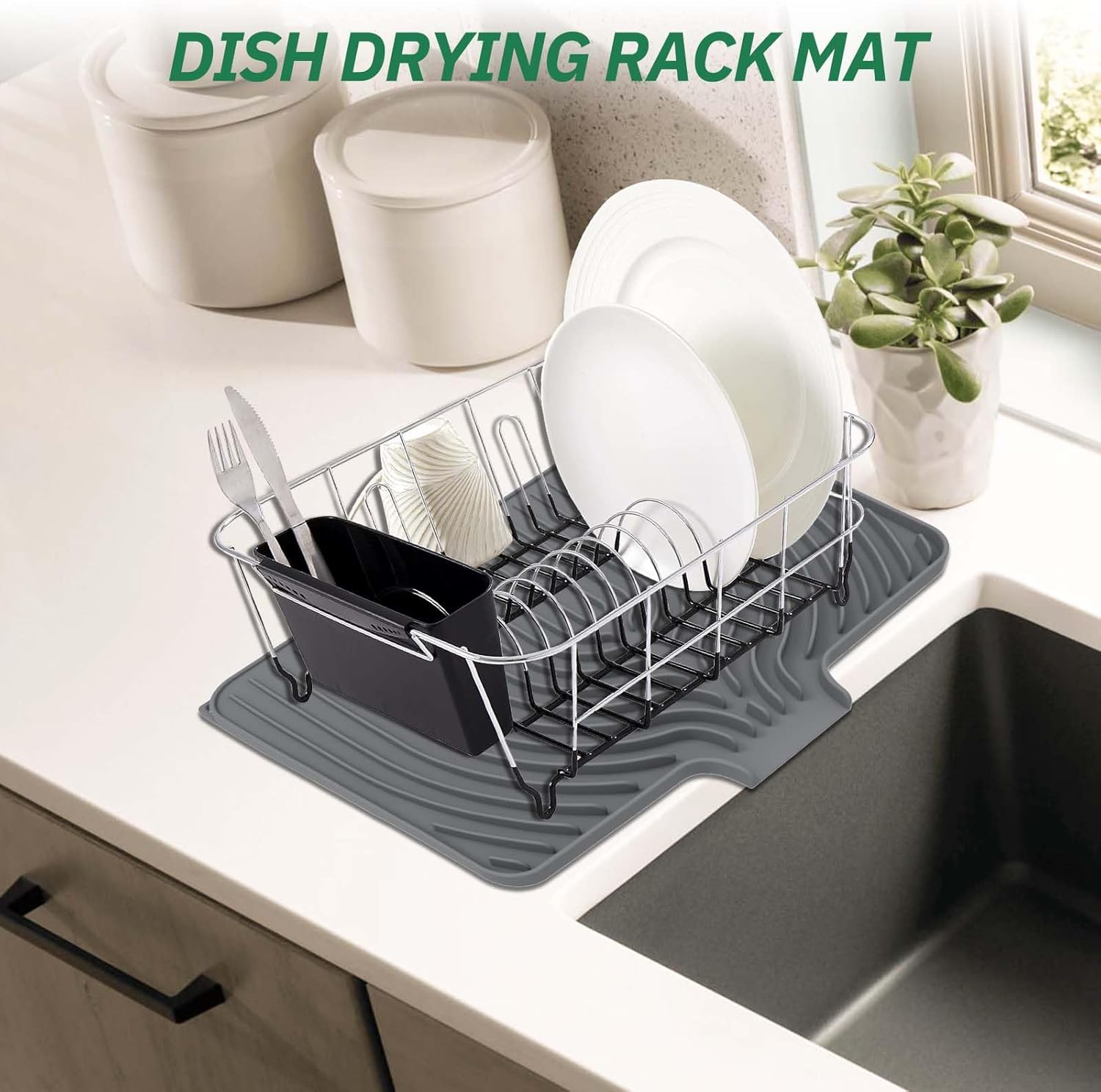 GUUKIN Silicone Dish Drying Mat, 17.7" x 11.8 " Drying Matt Kitchen Counter, Dish Drying Rack Mat, Easy Clean Pad for Countertop Protection, Multi-Functional Use (Grey)