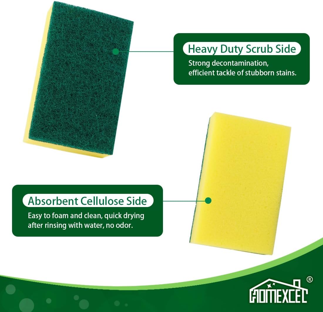 HOMEXCEL Heavy Duty Scrub Sponges Kitchen 60 Count, Extra-Large Sponges for Cleaning Kitchen and Household, Dish Scrubber for Washing Dishes, Pots and Pans