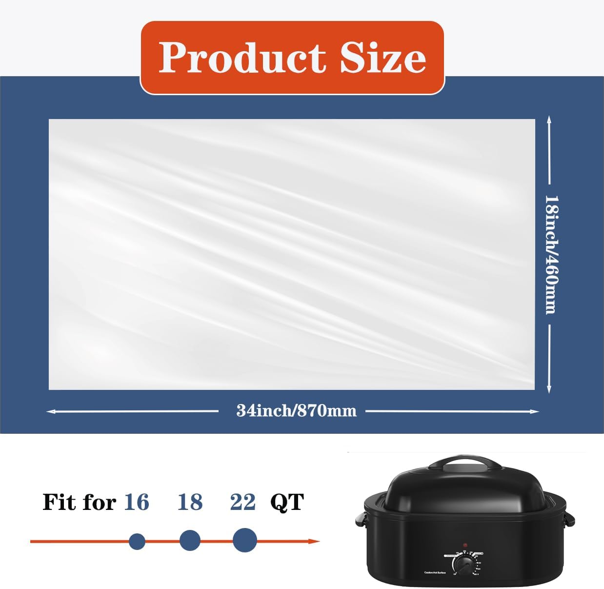 - 5.Universal Fit for Large Roasters – Measuring 18x34 inches, these liners are compatible with 16, 18, and 22-quart electric roasters. Use two liners at once to cook separate dishes in the same roaster!