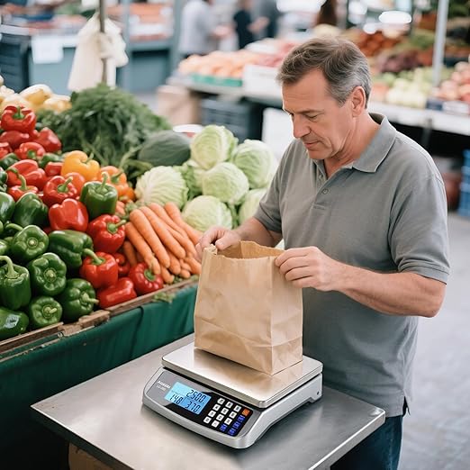 110lb Food Scale, Commercial Kitchen Scale with Price Computing, Plug-in Usable, 0.05oz/1g, 304 Stainless Steel, for Cooking, Vegetables, Farm, Industry, Counting. LC300