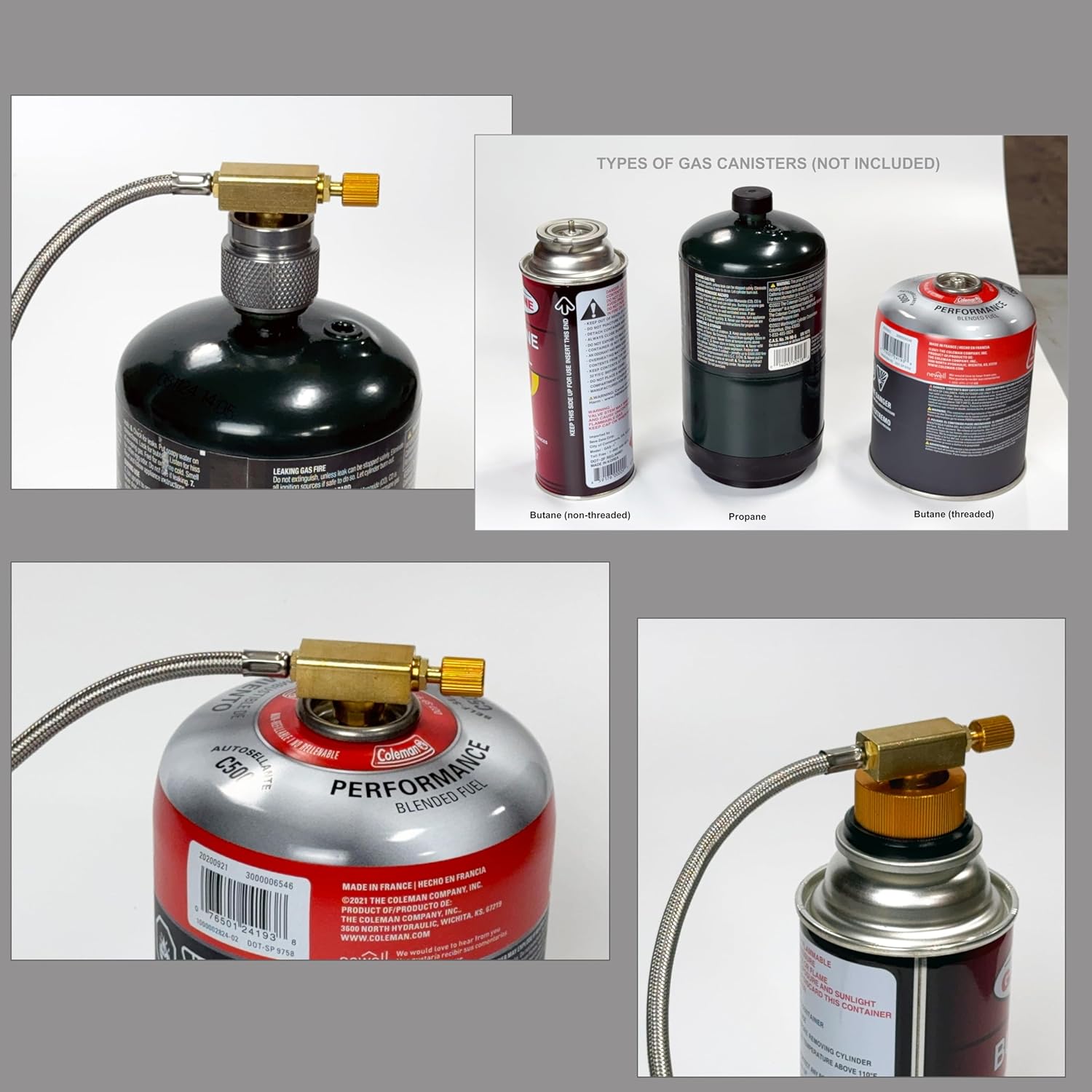 - Fuel Types: Butane (non-threaded) canisters, Butane (threaded) canisters, Propane canisters, 2 Adapters are Included. (Fuel is NOT included)