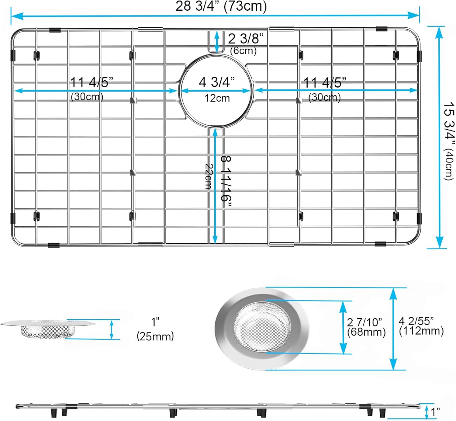 - Kitchen Sink Bottom Grid Dimension: 28-3/4" x 15-3/4". Sink Grid for Rear Drain Location. Fit for sink with length over 29" and width over 16".