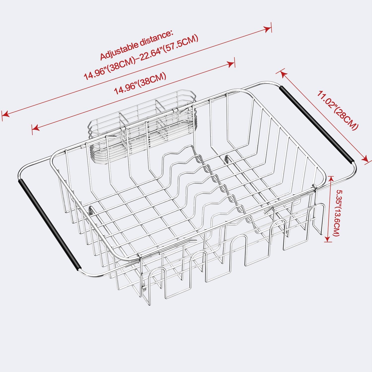 - 【Non-Slip Expandable Arms】The arms of the drainer rack are adjustable from 14.96" to 22.64", which makes it suitable for most sizes of sinks, and very easy to handle