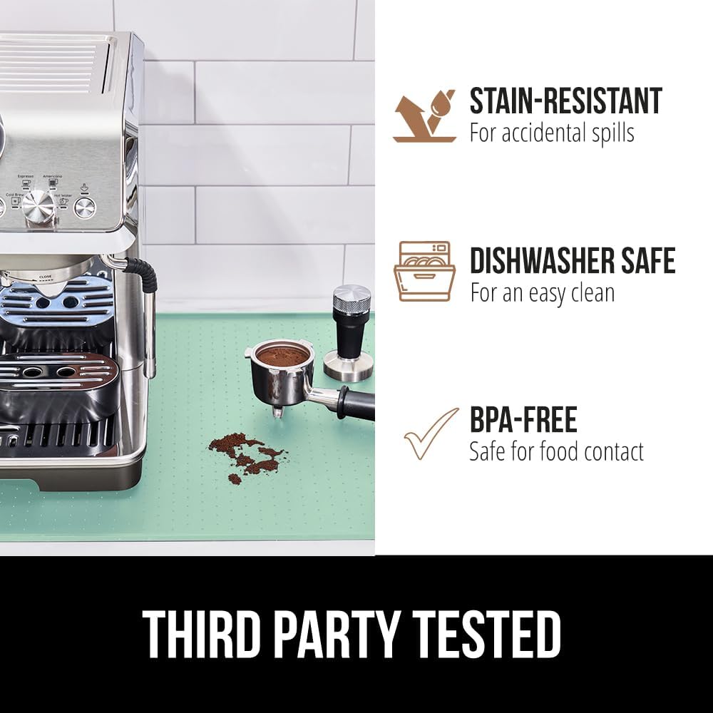 GORILLA GRIP Silicone Coffee Mat, Espresso Drink Bar Station Accessories, Waterproof Heat-Resistant Dish Drying Mats, Stay in Place on Kitchen Counter, Home Kitchen Decor Essentials, 11.5x18.5, Mint
