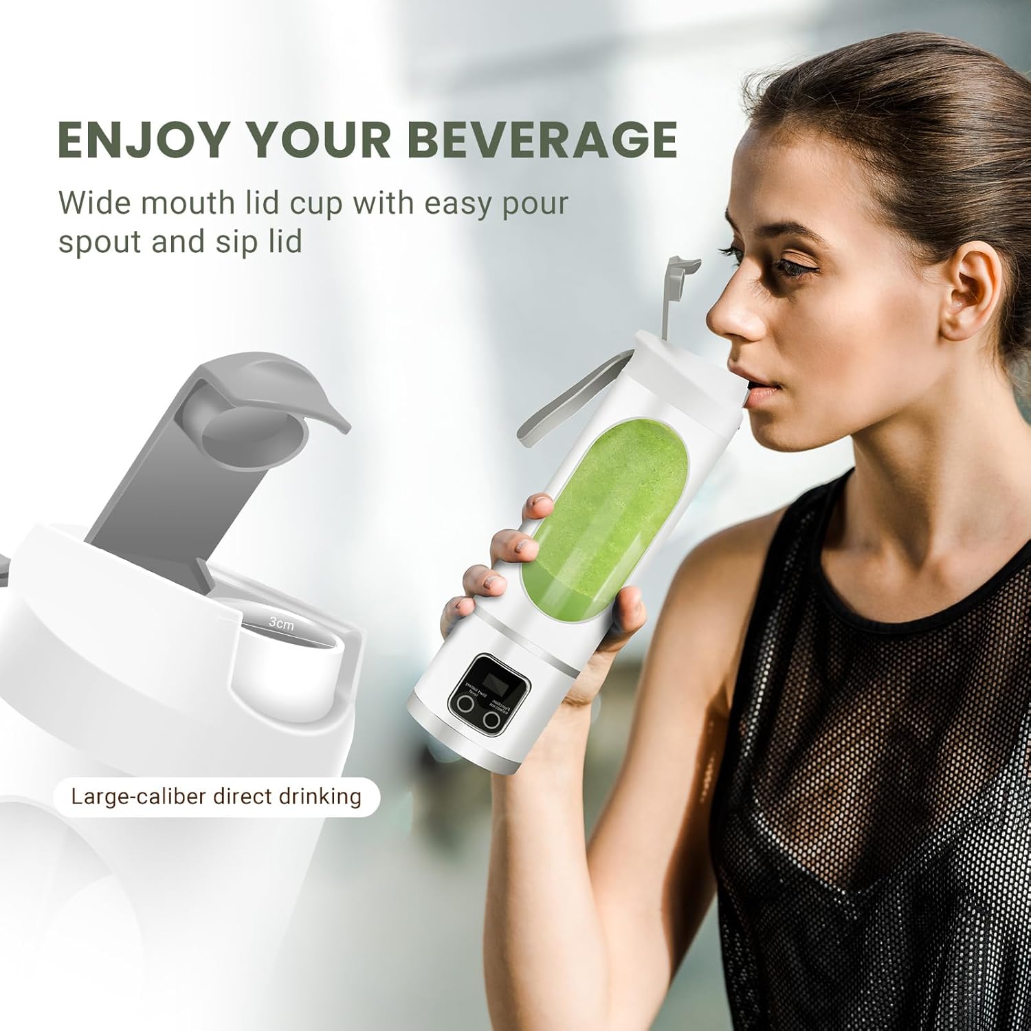 - 【Safety & Food-Grade 12 Blades 】Our Portable juicer made of high-quality food-grade, non-toxic ABS and 304 stainless steelFeatures an elegant hand-held M-cup lid design that not only looks beautiful but also allows for easy disassembly of the cup and machine.Features a robust 50W motor and 12 stainless steel blades spinning at 12,000 RPM.It can easily crush ice cubes and frozen fruits.Elevate your blending experience with convenience and speed.