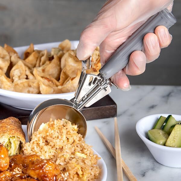 - PRECISION n POWER FOOD SCOOP COMBO SET: 4OZ trigger scoop ensures exact ½-cup portions, while the spade cuts through -20°F ice cream in 1 motion to cut half your prepare foods time