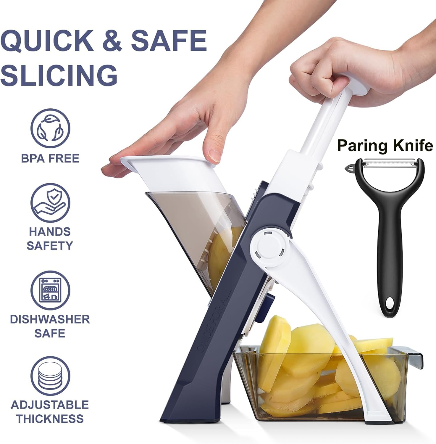 Safe Mandoline Slicer for Kitchen, Meal Prep, Potato Slicer, Adjustable/Easy to Clean/Storage, Kitchen Chopping Artifact, French Fry Cutter,Paring Knife/Cleaning Brush (only Slice, DarkBlue)