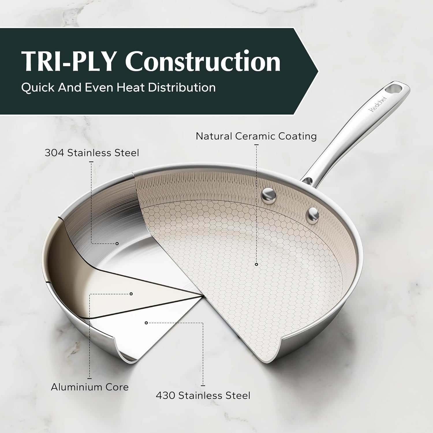 Redchef Hybrid Ceramic Non Stick Fry Pan Set 2 Piece, 9.5, 11 Inch, Kitchen Frying Pans, Skillet Tri-Ply Stainless Steel & Aluminum, All Cooktops