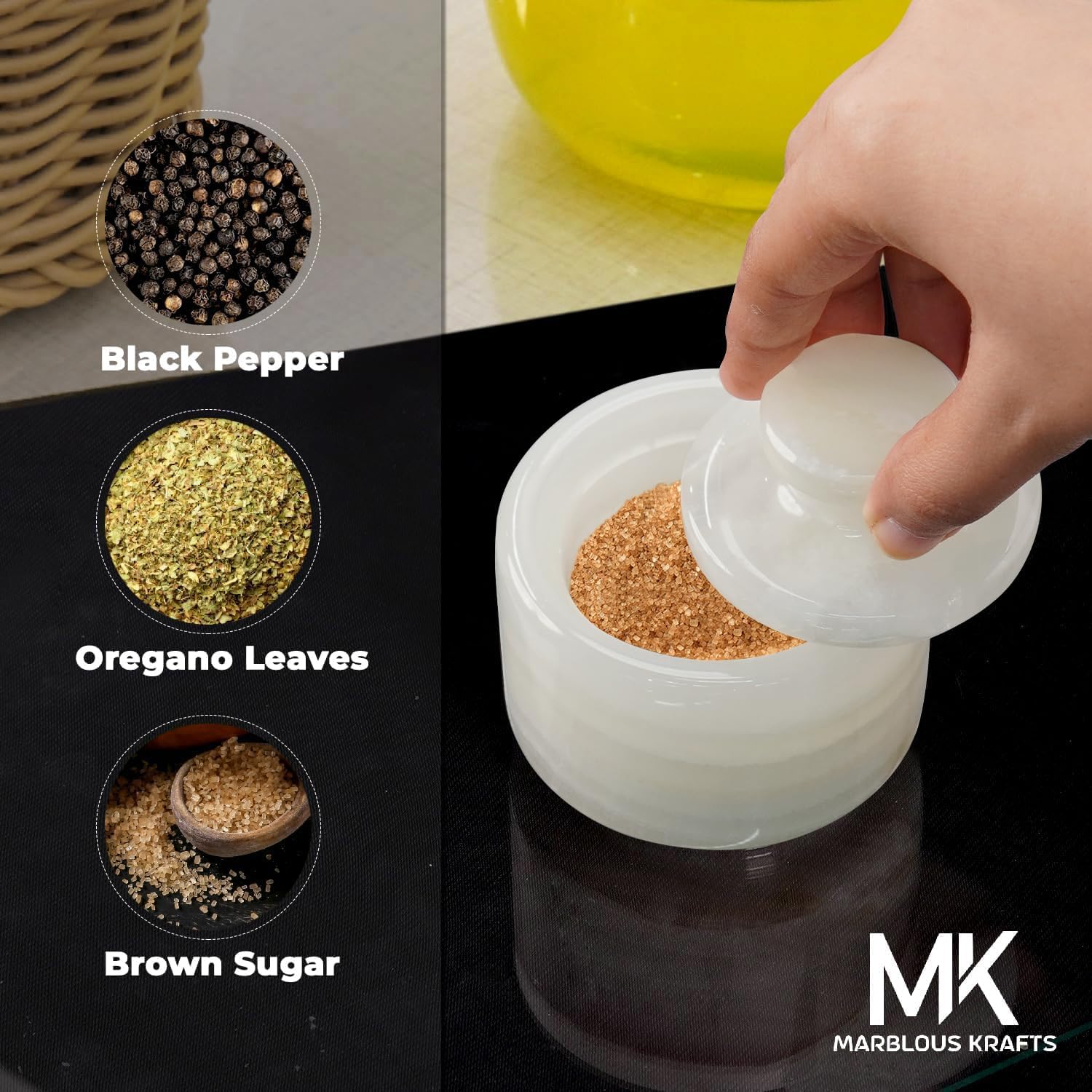 Marble Salt Cellar 3 Inch White Onyx Salt Holder With Lid for Spice Jar & Stone Salt Container, Modern Sugar Bowl