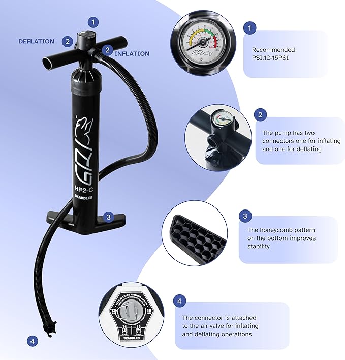 • 【All-in-One SUP Accessories Kit】 Each SKADDLES paddle board comes with a high-efficiency manual air pump, adjustable paddle, ankle safety leash, waterproof phone pouch, repair kit, and removable fins — everything you need for easy setup and worry-free paddling adventures.