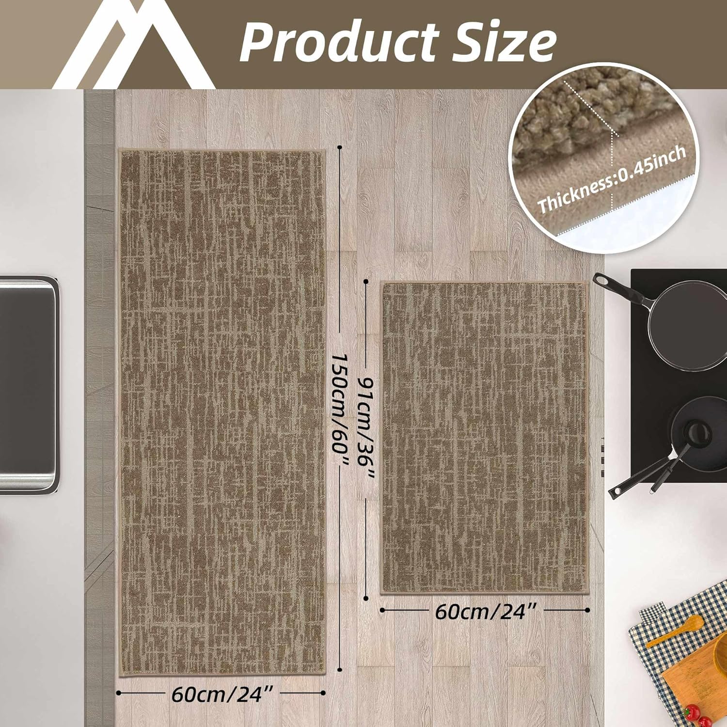- Versatile Kitchen Rug Set:The tight edging makes this kitchen carpet look more elegant without snagging and beautiful kitchen decoration.As a rug used for high traffic areas,our rugs for kitchen floor are widely used for the kitchen,sink area,laundry room,door mat,living room,area rug or even in the bathroom.Before placing, please make sure that the floor is clean and dry