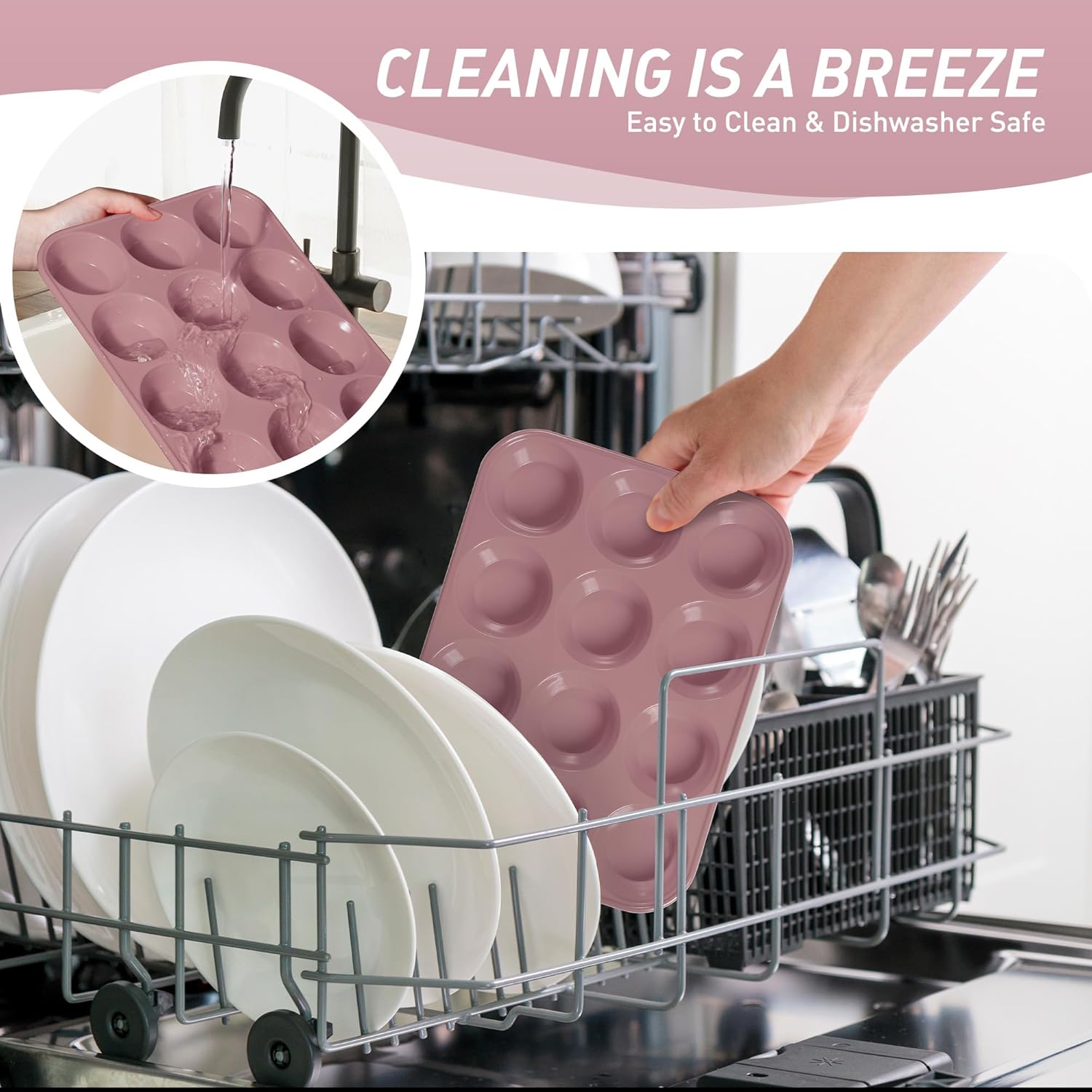 - Effortless Release Every Time: The baking cupcake muffin pans features a smooth, nonstick surface that releases baked goods with just a gentle push from the bottom - no messy greasing or stubborn sticking. After baking, simply place the entire baking cupcake muffin pans in the dishwasher for effortless cleaning. Compared to traditional metal baking cupcake muffin pans, our high-quality silicone material resists oil absorption, reducing residue buildup by 85% for quicker, simpler cleanup.