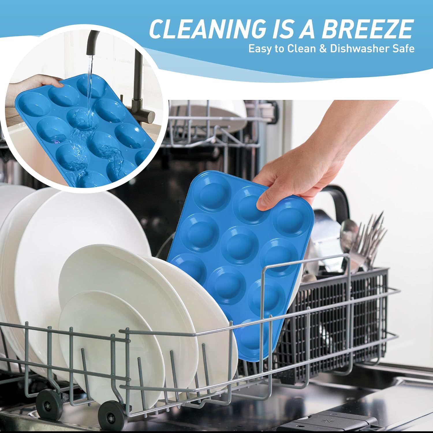 - Effortless Release Every Time: The baking cupcake muffin pans features a smooth, nonstick surface that releases baked goods with just a gentle push from the bottom - no messy greasing or stubborn sticking. After baking, simply place the entire baking cupcake muffin pans in the dishwasher for effortless cleaning. Compared to traditional metal baking cupcake muffin pans, our high-quality silicone material resists oil absorption, reducing residue buildup by 85% for quicker, simpler cleanup.