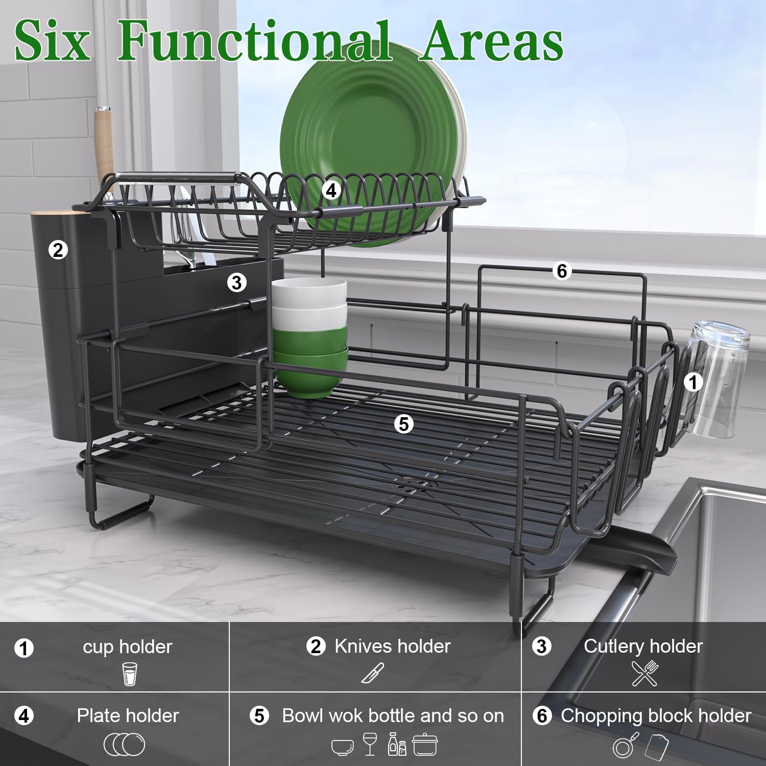 - 【2-in-1 Detachable Combination Design】The dish drying rack adopts a 2-in-1 detachable combination design, which can be used as a sink drainer and kitchen counter drainer, or combined as a 2-tier drainer.