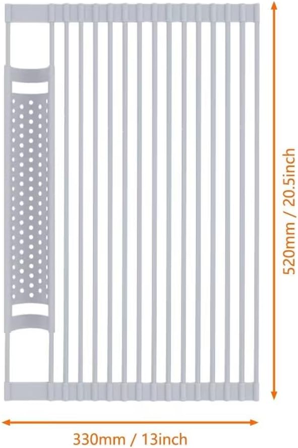 Silicone Wrapped Dish Drying Rack Above Sink, Width 20.47 inches x Length 12.99 inches, roll up Dish Drain Above Sink - Foldable (Silicone Rubber)