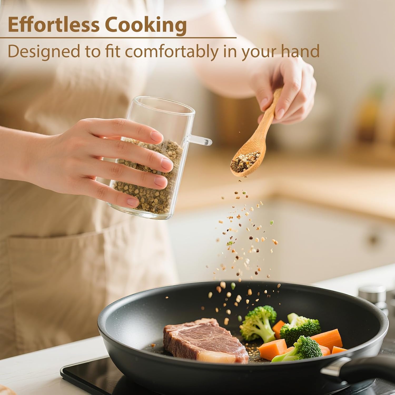- Convenient Spoon-on-Loop Design: Each jar includes a matching spoon that neatly attaches to the side loop—always within reach without taking up space inside the jar. Perfect for quick and hygienic scooping during everyday cooking or baking.