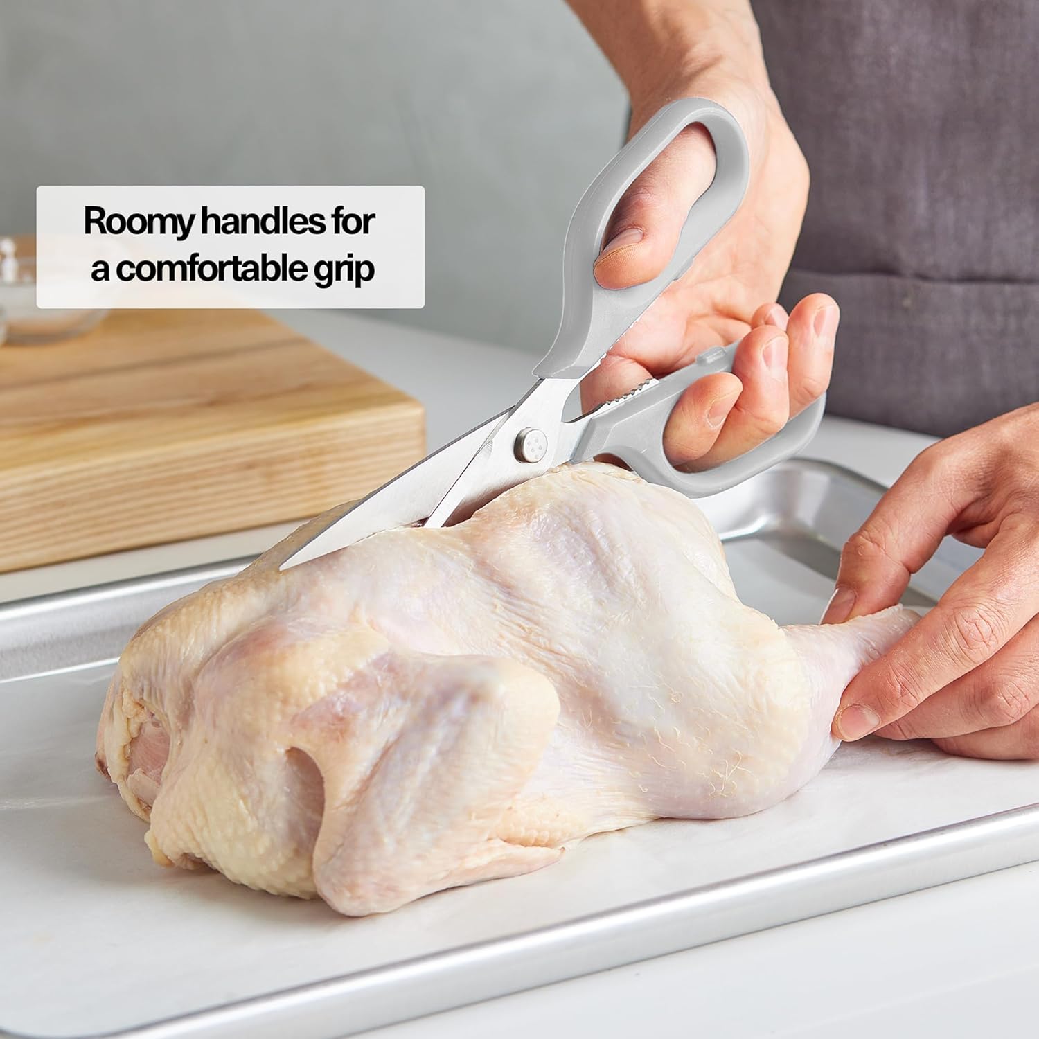 - Effortless Cleanup: The genius lies in the details. Our kitchen shears effortlessly come apart, allowing for meticulous cleaning, reaching every nook and cranny which helps elimiate cross contamination and other foodborn illnesses.