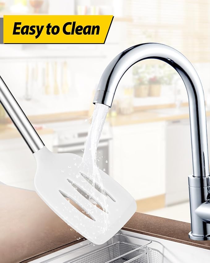 - Widely Used : Thin and flexible edge of the silicone turner is ideal for flipping,frying and turning food; Large capacity design of cooking spoon, used to hold food more convenient; Slotted Spoon can quickly drain the water