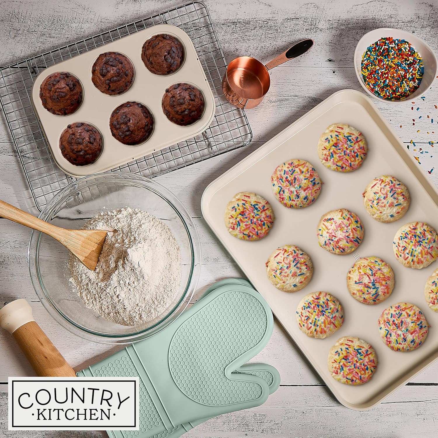 - Bonus Oven Mitts & Cooling Rack – Includes heat-resistant oven mitts to protect your hands while baking and a cooling rack for faster cooling of cookies, cakes, and other treats, enhancing your overall baking experience.