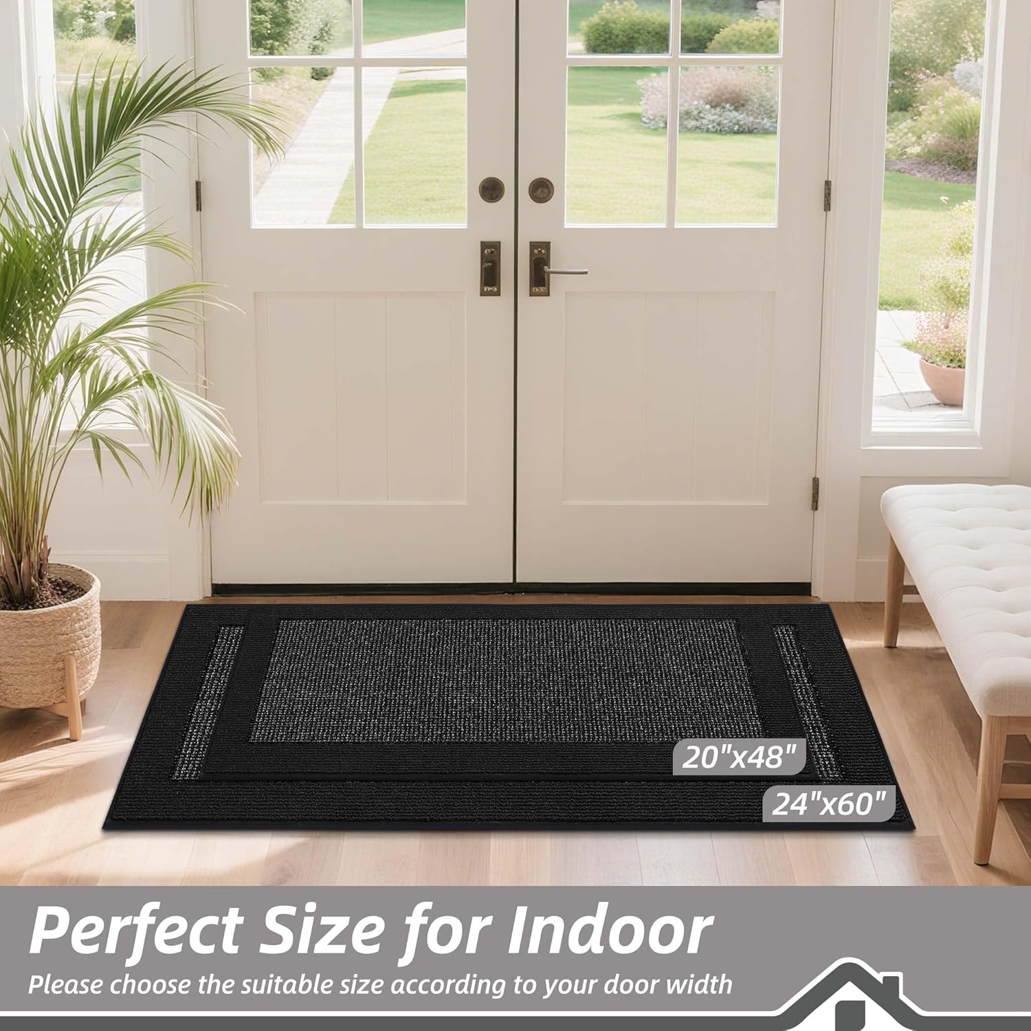 BEQHAUSE Indoor Door Mat 24" x 60", Dirt Trapper Door Mats Non-Slip Entryway Rugs Washable, Resist Dirt Absorbent Welcome Mat, Low Profile Floor Mats for Front Back Door and Entryway, Black