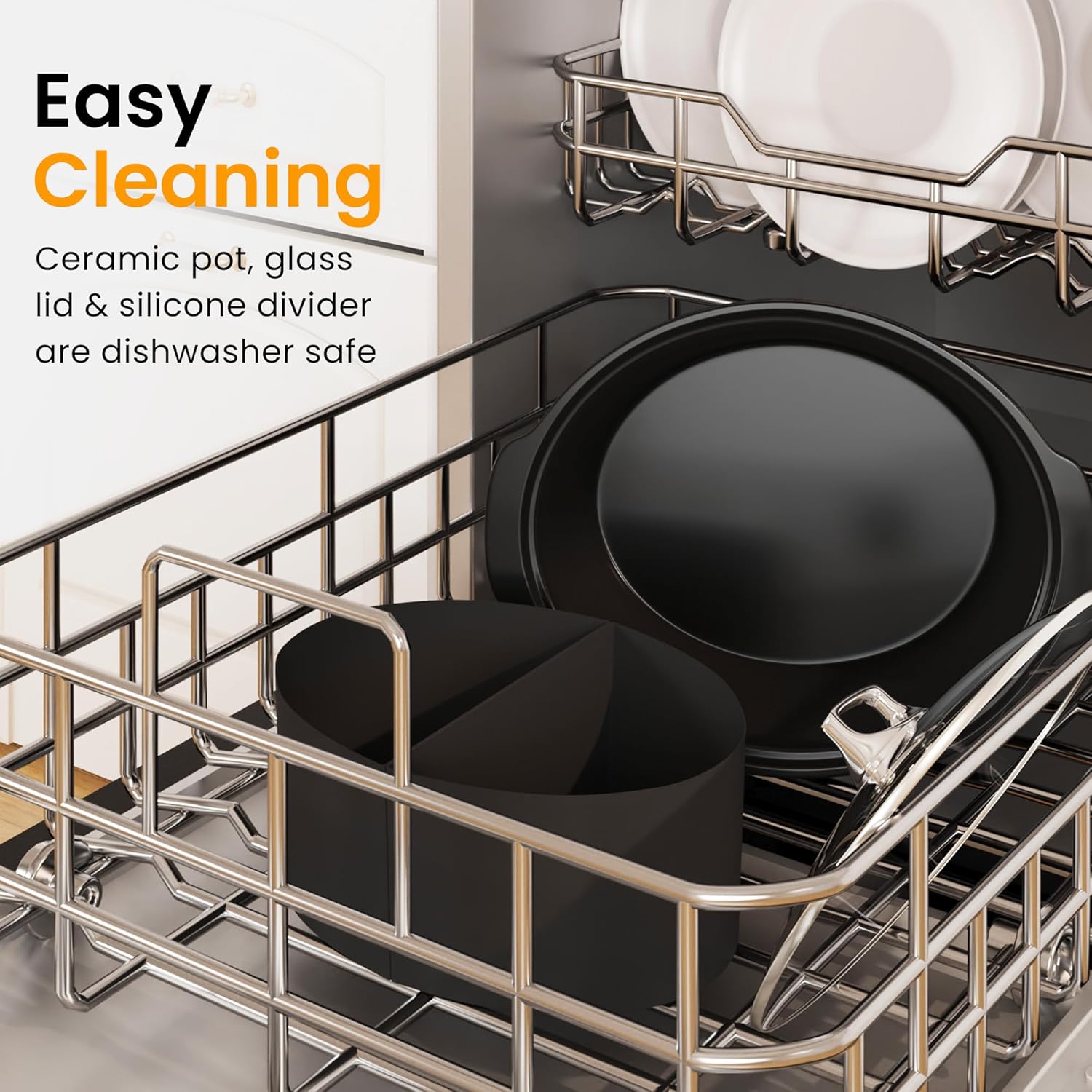 - Effortless Cleanup: Silicone liners, a detachable pot, and a transparent lid are all dishwasher-safe, simplifying the cleanup process. And the use of silicone liners eliminates the need to wash the pot again, offering added convenience.